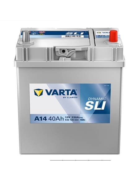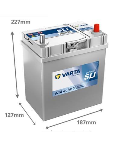 La Batería A14 Varta de la gama Blue Dynamic cuenta con un pico de arranque de 330A. con una capacidad de 40Ah. Su dimensión es de 187x140x227 mm. Es una batería para el arranque de motores y es valida para muchos tipos de vehículos asiáticos.
