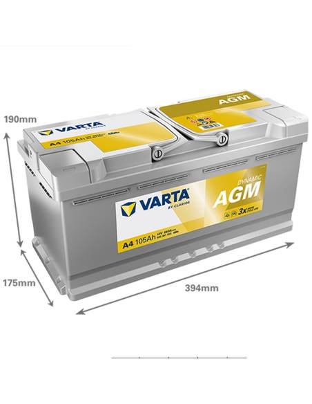 La Batería Varta A4 105Ah 12V para Vehículos Start&Stop | Silver Dynamic AGMes capaz de proporcionar energía a los vehículos y accesorios más exigentes ya que es tres veces más resistente que las baterías convencionales. Está diseñada para abastecer las grandes enormes demandas de energía de los vehículos equipados con sistemas Start-Stop avanzados, como el sistema de frenada regenerativa. Además, al estar diseñadas y producidas en Alemania, puede tener la seguridad de que han sido expresamente fabricadas para satisfacer los más altos estándares de calidad.
