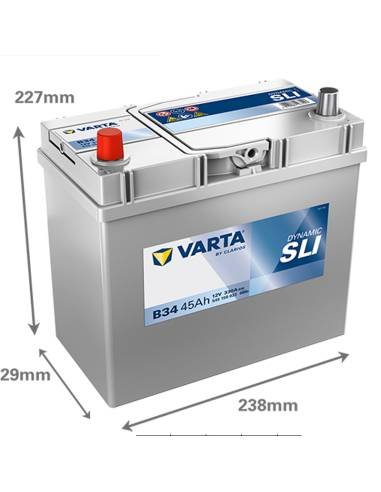 La Batería B34 Varta Blue Dynamic cuenta con un pico de arranque de 330A. con una capacidad de 45Ah. Su dimensión es de 238x129x227 mm. Es una batería de coche válida para diferentes tipos de marcas.