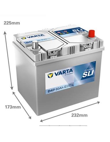 La Batería Varta D47 Blue Dynamic cuenta con un pico de arranque de 540A. con una capacidad de 60Ah. Su dimensión es de 232x173x225mm. Es una batería para el arranque de motores y es valida para muchos tipos de vehículos asiáticos.
