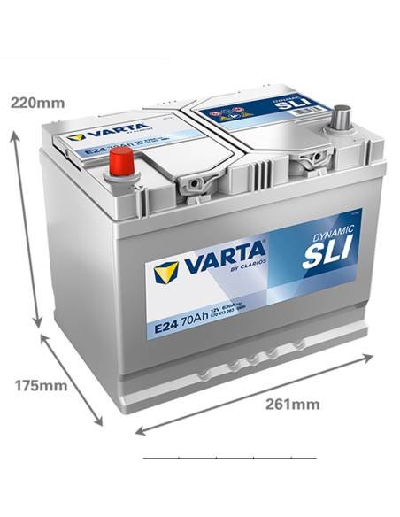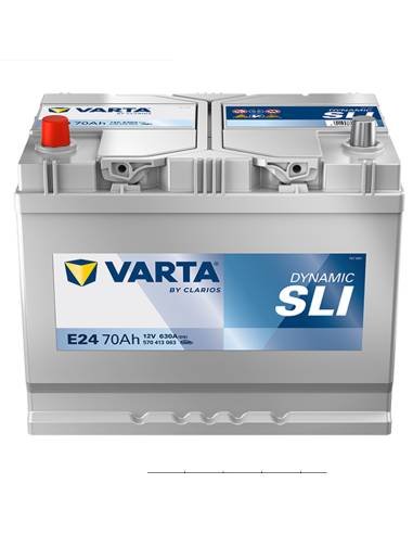 La Batería E24 Varta de la gama Blue Dynamic cuenta con un pico de arranque de 630A. con una capacidad de 70Ah. Su dimensión es de 261x175x220mm. Es una batería de coche valida para muchos tipos de vehículos europeos.