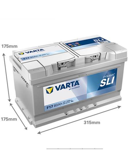 La Batería F17 Varta de la gama Blue Dynamic cuenta con un pico de arranque de 740A. con una capacidad de 80Ah. Su dimensión es de 315x175x175mm. Es una batería para coches valida para diferentes tipos de marcas de vehículos.